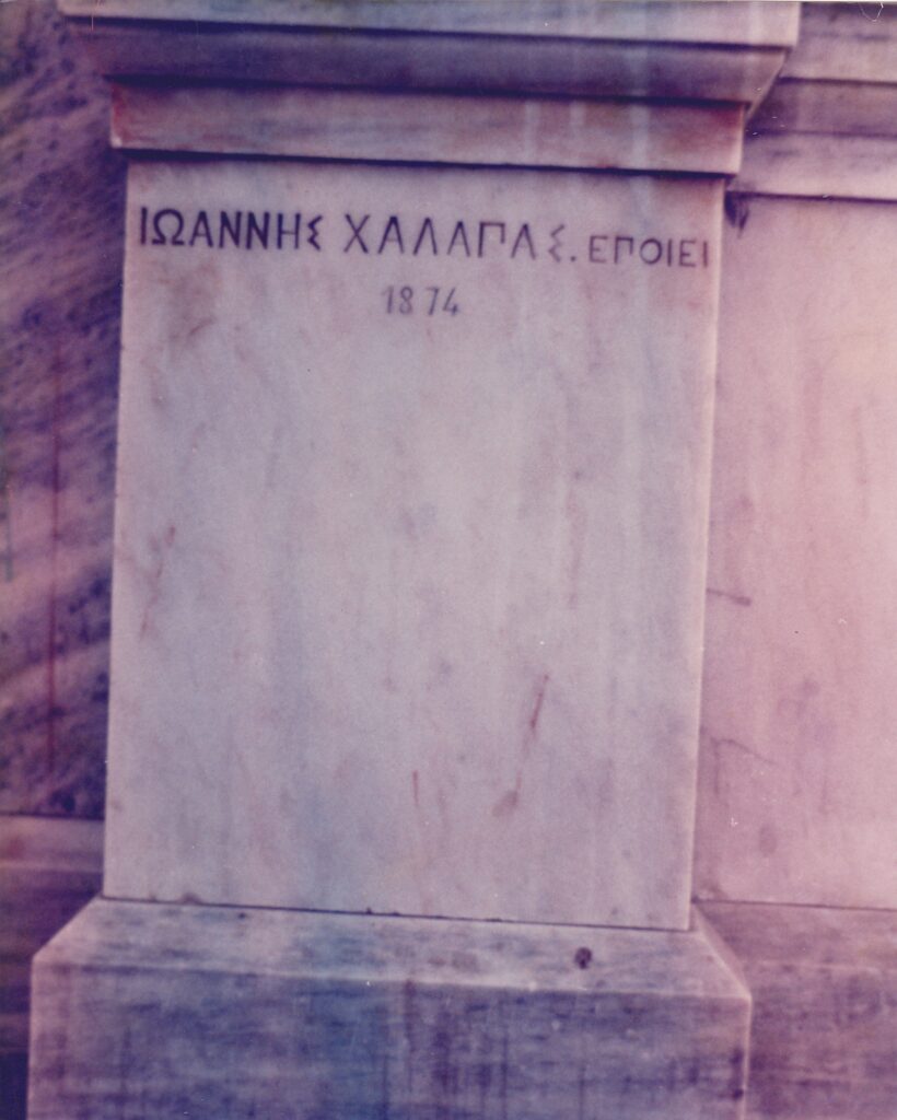 Πέρα όμως από μαρμάρινες εργασίες στα τέμπλο της Παναγίας, της Αγίας Τριάδας και τις εργασίες στην εκκλησία του Αγίου Κωνσταντίνου, ο Ιωάννης Χαλεπάς φέρεται και ο κατασκευαστής μιας μαρμάρινης προτομής του Χατζηγιάννη Μπιτζέ. Στο προαύλιο της εκκλησίας της Παναγίας, και προς τη βόρεια πλευρά του, υπήρχε οβελίσκος μαρμάρινος με την προτομή του ανάγλυφη σε μικρό στρογγυλό πλαίσιο. Επίσης στο προαύλιο της Αγίας Τριάδας ήταν το μνημείο του εμψυχωτή της οικοδόμησής αυτής της εκκλησίας του, Αντωνίου Γ. Βλάμου (1890). Ήταν θολοσκέπαστος τάφος δίπλα στο ιερό της.