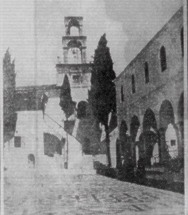 Από το βορρά ήτανε μια πόρτα που πήγαινε πάνω στη Μητρόπολη. Δίπλα ήτανε το καμπαναριό της εκκλησίας, σιδερένιο. Όταν φύσαγε ο βοριάς εκείνο έγερνε κατά το νοτιά και άμα φύσαγε νοτιάς εκείνο πάλι έγερνε κατά το βοριά. Από φόβο μην πέσει πήρανε την απόφαση να το κάμουνε ξύλινο μέχρι να μπορέσουνε να φτιάξουνε ένα πέτρινο. Πιάσανε λοιπόν, και χαλάσανε το σιδερένιο καμπαναριό, ποιος το είχε κάμει κανείς δεν ήξερε!