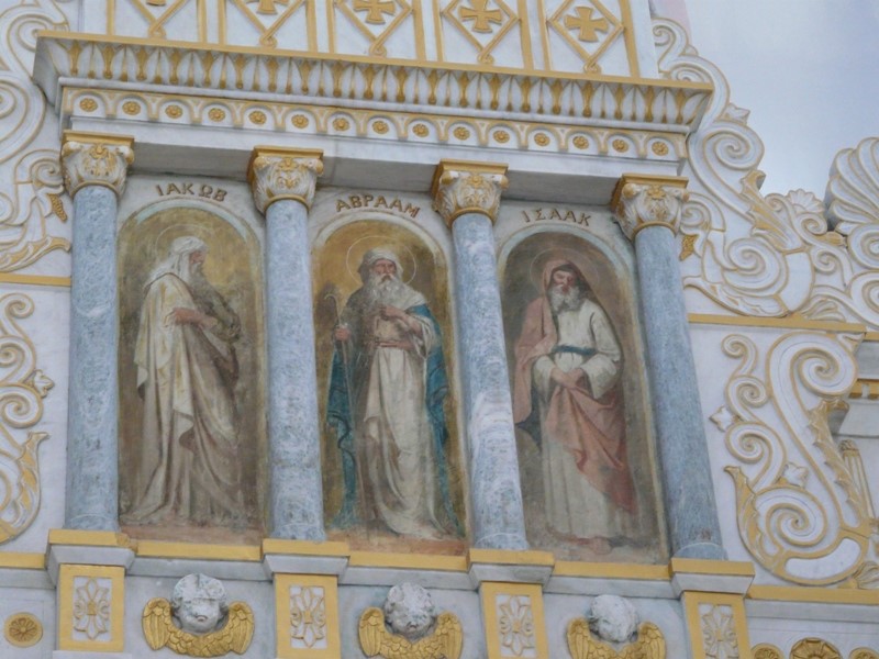 Όλα τα εικονίσματα του τέμπλου τάχε κάμει ο Χαλεπάς, έχει και την υπογραφή του. Τάχενε κάμει κτυπητά με καλέμι και όχι ζωγραφιστά, το ίδιο όπως το τεμπλο του Οσίου Χριστόδουλου, όλο μάρμαρο».