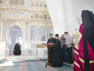 Όλα αυτά τα συναισθήματα τα νιώθει κανείς ακόμα πιο έντονα όταν μπαίνει στη εκκλησία της Παναγίας. Εκεί με δέος αντικρίζει ένα πλήθος από τόξα, κολώνες, μαρμάρινες ανθοδέσμες από λουλούδια της μικρασιατικής γης, βυζαντινούς αετούς, εκκλησιαστικά σύμβολα και πολλά άλλα στοιχεία από την ελληνική λαϊκή τέχνη που στολίζουν κάθε γωνιά της, μα περισσότερο από όλα το λαξευτό μαρμάρινο τέμπλο της.
