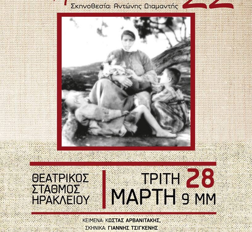 Ο σύλλογος Αλατσατιανών Νομού Ηρακλείου παρουσιάζει τη παράσταση της θεατρικής του Ομάδας, με τίτλο, «Το Χρονικό 1922», του Κώστα Αρβανιτάκη, τη Τρίτη 28 Μάρτη στις 9 το βράδυ στο Θεατρικό Σταθμό Ηρακλείου και σας προσκαλεί να την παρακολουθήσετε. Είσοδος Ελεύθερη.